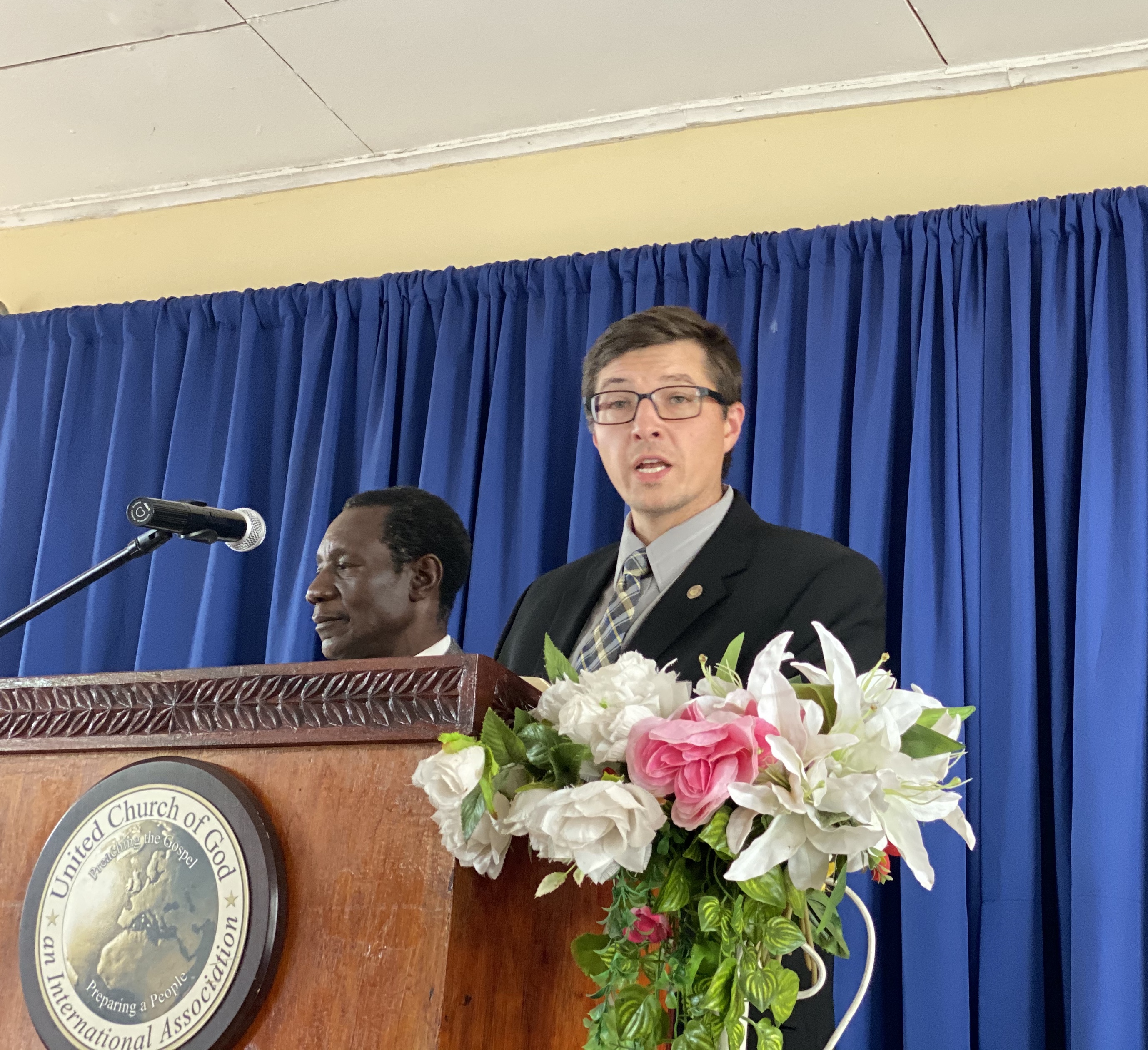 Lewis giving the sermon, and Mr. Thungula translating