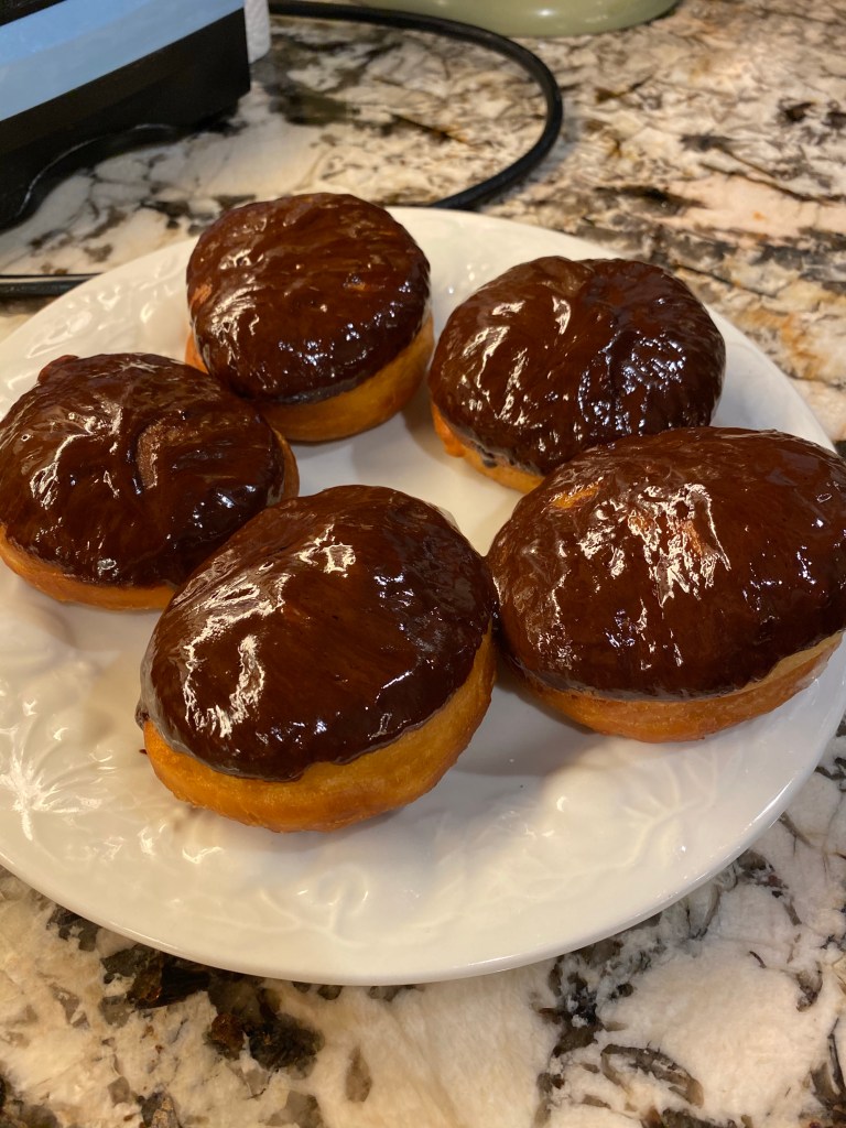 Here are photos from the process and the final product. So, how did this doughnut snob find them? They were pretty good. Weirdly, I only made one dough, but half of the dough didn’t rise like the others. But overall, better than Dunkin’ for sure.