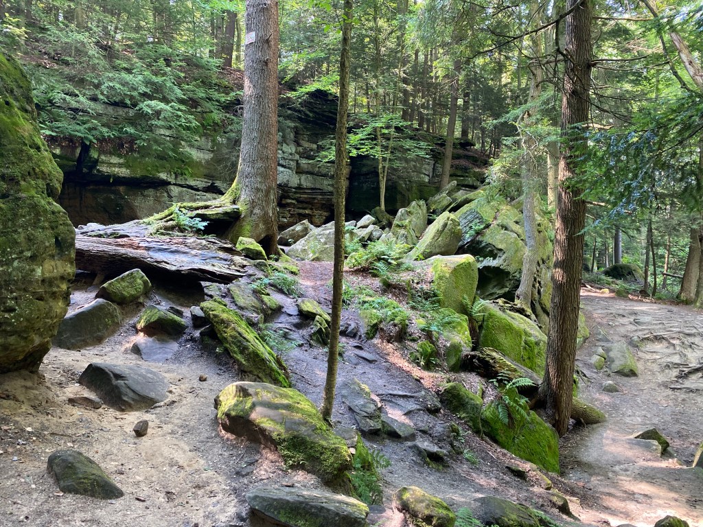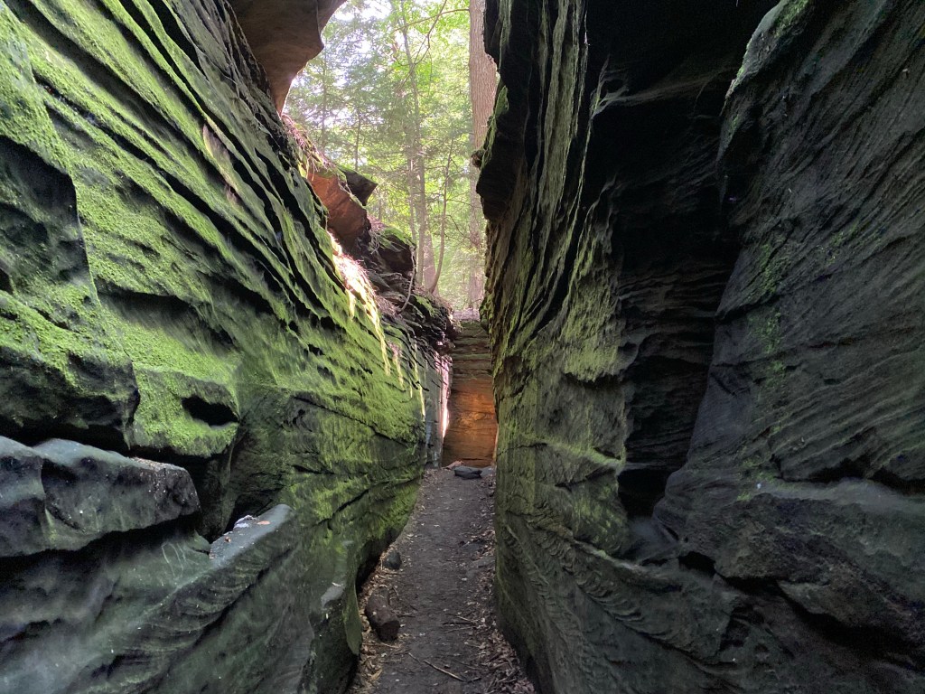 Our first stop was in Warren, Ohio (we drove from NY to NJ to PA to OH). We were going to arrive a little earlier than our host was ready for so we went to one of my favorite parks in the world, The Ledges. The Ledges are part of the Virginia Kendall State Park, which is adjacent to or part of the Cuyahoga Valley National Park. It’s beautiful there. I lived in NE Ohio for ten years so I have many happy memories of this park. We did a short hike and then headed to our friend’s house.