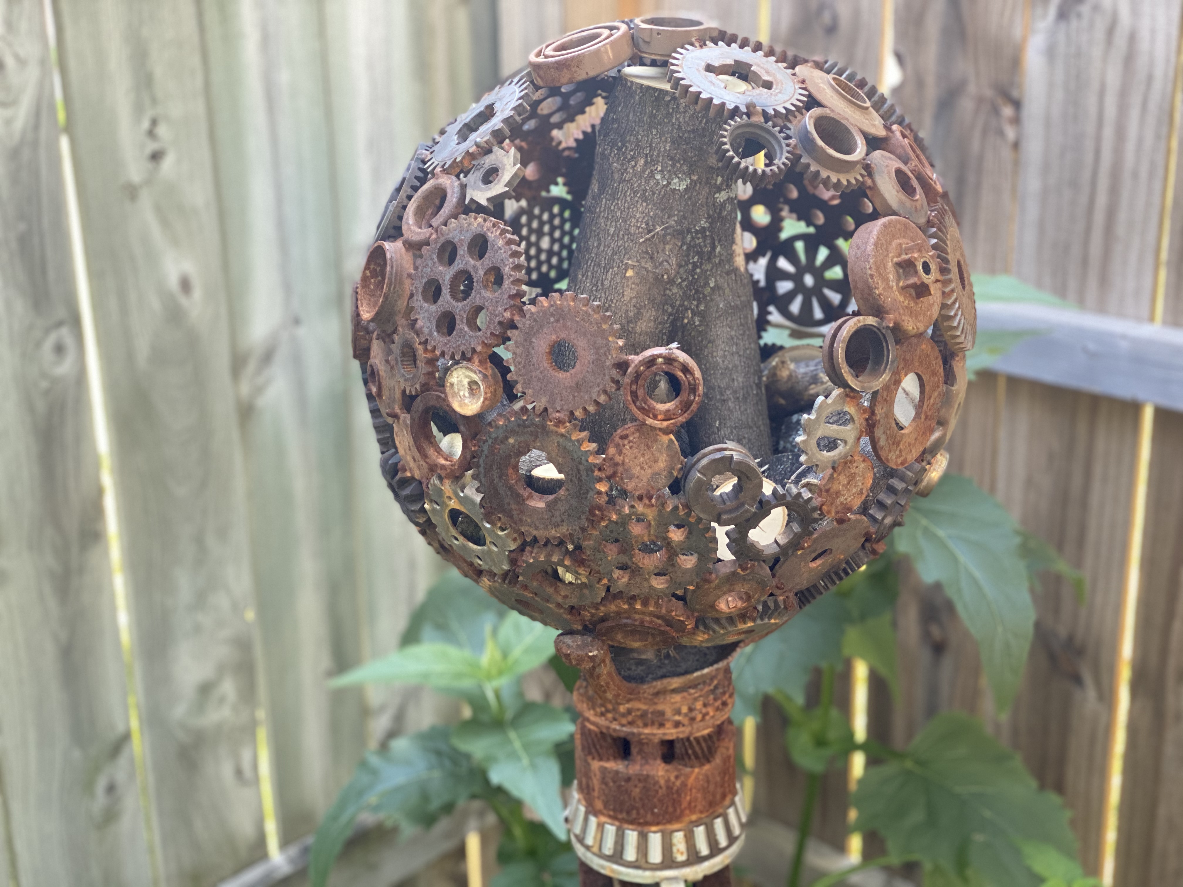 First, Dave made an appointment to view the garden and art work of a local artist, Nate Otto. His garden is a lovely combination of local flora (with occasional fauna) and steampunk industrial art pieces. Nate’s love of his community is evident. Taking time out of his busy schedule he was welcoming, friendly, and clearly likes to keep busy. Please don’t just show up at his house, but if you can make an appointment to see his creations, you’re in for a wonderful treat, his artwork is phenomenal. Beyond being a great artist, Nate keeps a dying art alive through repair of player pianos. I’ll link his website below.