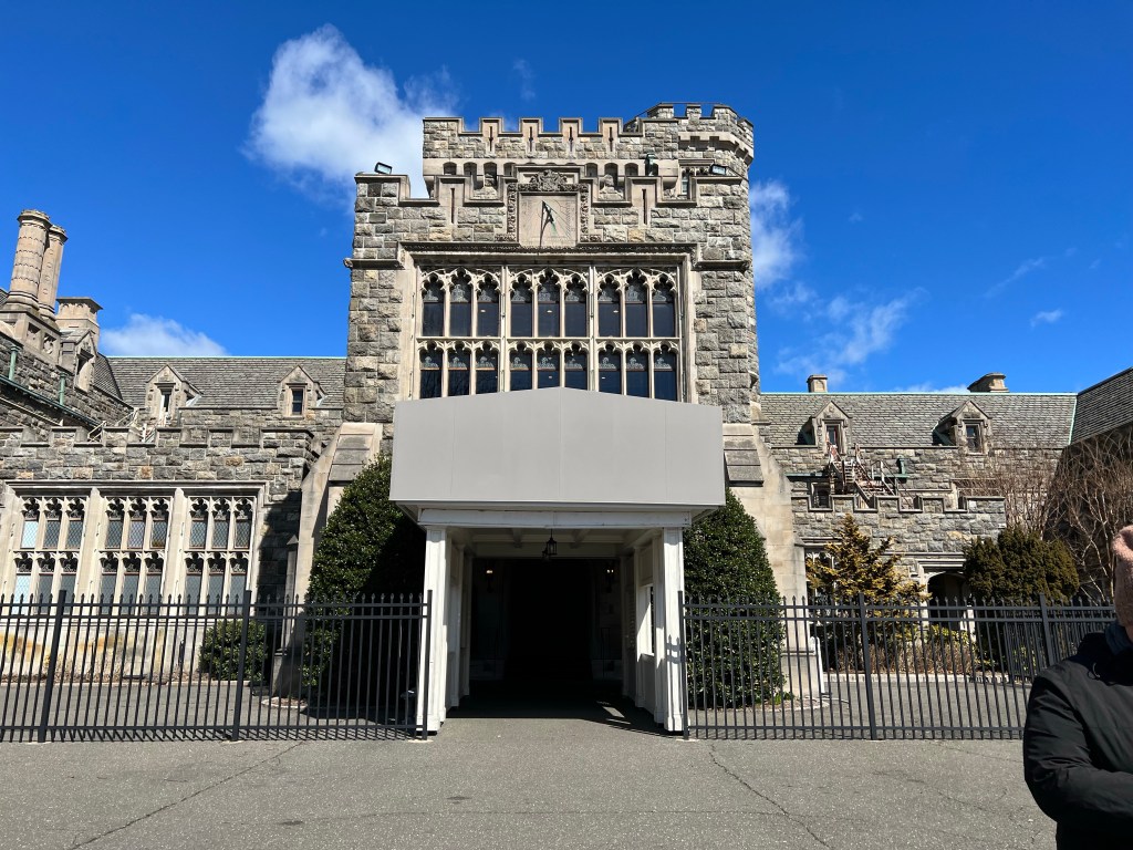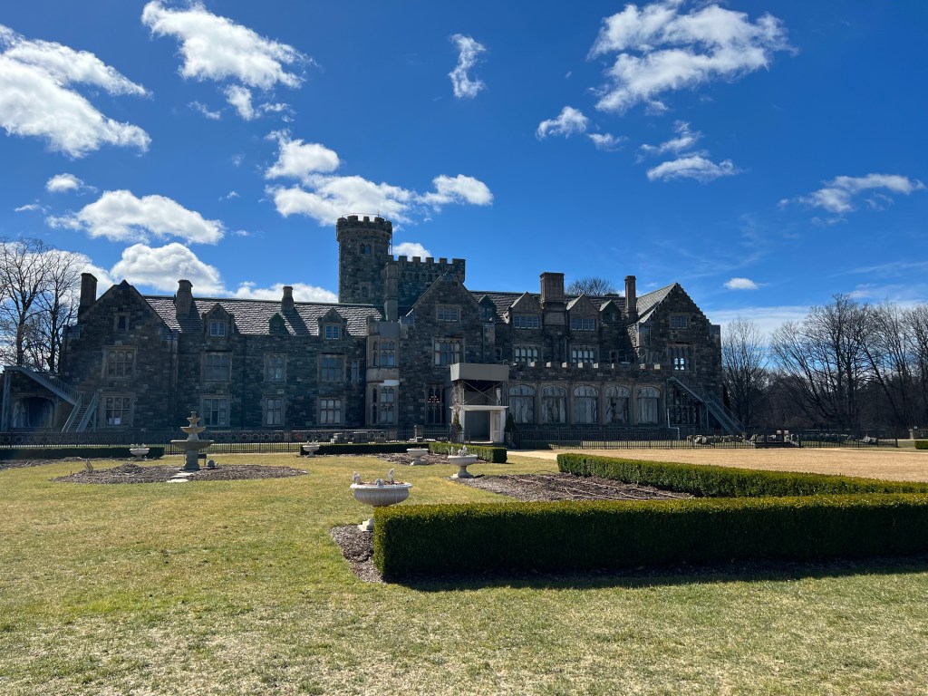 Undeveloped land was purchased by Howard Gould (son of the railroad robber baron Jay Gould) in 1900 and 1901, where he built a gigantic 100,000-square-foot medieval castle (modeled after a castle in Ireland) for his wife… however, she did not love it. So he built a much more manageable (I hope you can feel my eye-roll) 50,000-square-foot mansion across the property — the Hempstead House. It did not help, they divorced in 1909.